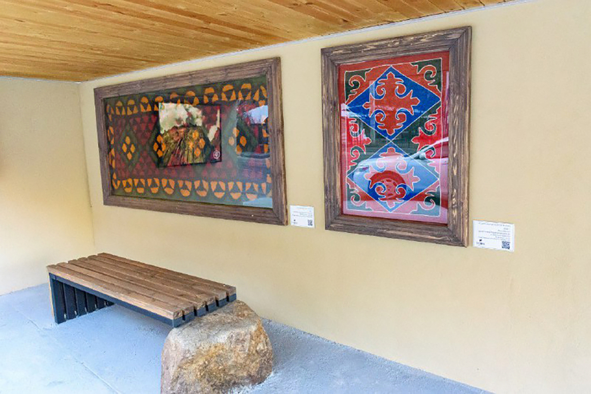 Центральным экспонатом остановочного пространства стало современное войлочное панно «Бичген кийиз» (ковер с узором). Здесь также разместили подлинное войлочное изделие «Ала кийиз».