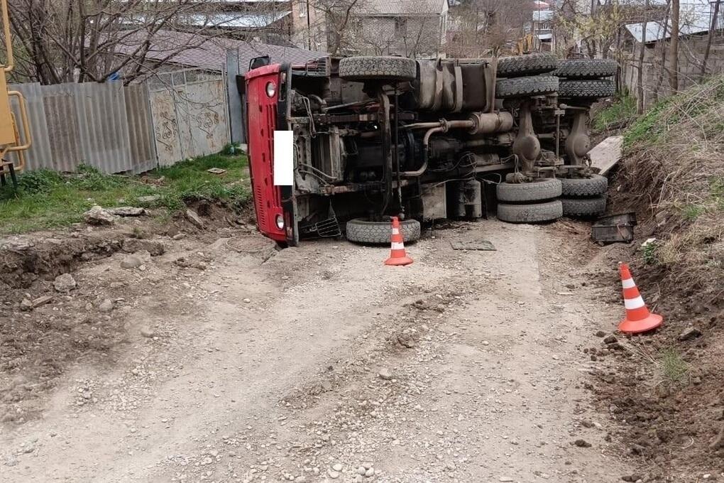 В Кисловодске на грузовом автомобиле перевернулся лишенный права управления водитель. По предварительным данным, 13 апреля около 15 часов на улице Крупской водитель грузового седельного тягача КАМАЗ не справился с управлением и допустил опрокидывание. В результате на проезжую часть высыпался перевозимый груз – грунт.