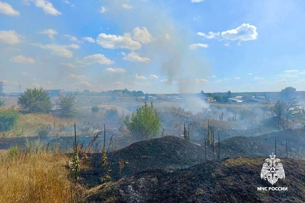 Огнеборцы ликвидируют возгорание сухой растительности на площади около 1 гектара. Существовала угроза распространения на строения. В кратчайшие сроки им удалось потушить пожар и отбить угрозу частным домам и производственному зданию.