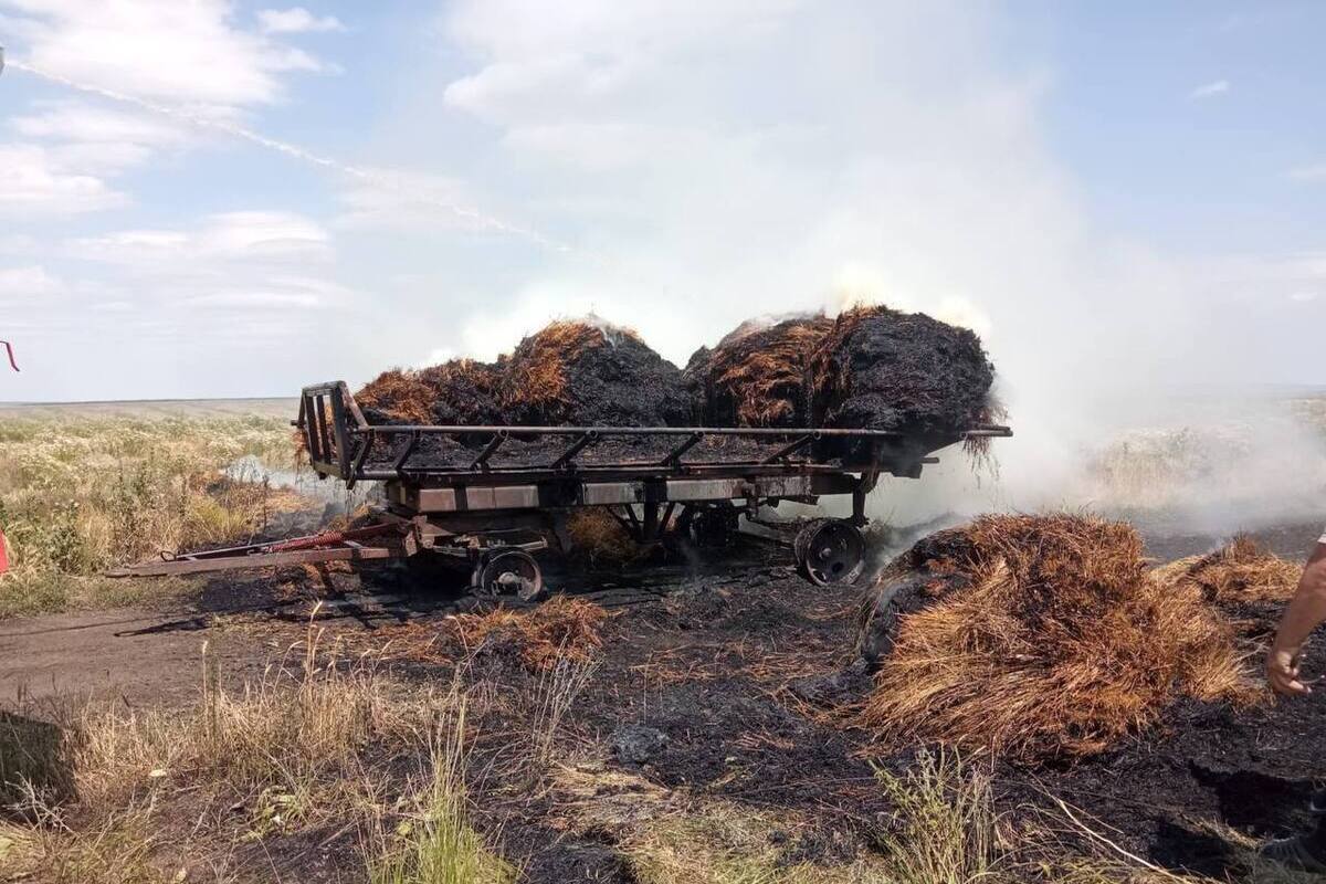 Происшествие случилось недалеко от села Янкуль в обеденное время. Селянин возвращался с поля на своем тракторе, когда у него в телеге загорелись рулоны сена. Огонь охватил весь груз и перешел на траву. Хозяин успел отцепить телегу и вызвать пожарных.