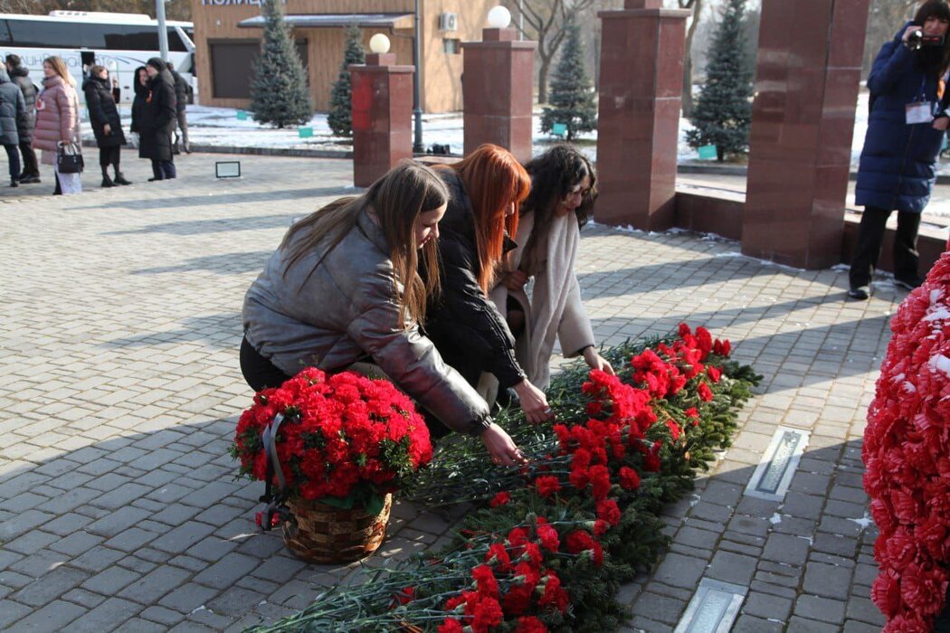 Позже у мемориала «Никто не забыт, ничто не забыто» участники проекта возложили гирлянды и цветы к Вечному огню, почтили память героев минутой молчания.