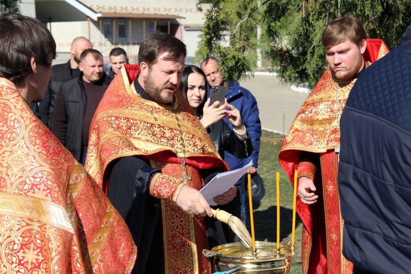 Часовня будет посвящена Святому великомученику и целителю Пантелеймону. Ее первый камень заложили в торжественной обстановке с освещением, которое совершил благочинный округа священник Алексий Макаренко.