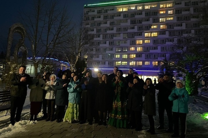 Жители 47 городов России, отдыхающие в санатории Железноводска, изъявили желание поддержать военнослужащих страны, которые сейчас участвуют в специальной военной операции на Украине. Как наступили сумерки, они включили свет в номерах и окна загорелись в форме буквы «Z».