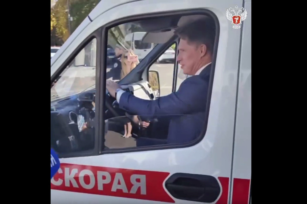 Чтобы опробовать автомобили в ходу, Михаил Мурашко сел за руль одной из машин скорой помощи, которая передана в Центральную районную больницу Терского района.