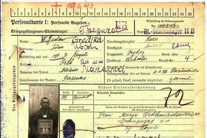 Согласно данным архивов, Гречкин Иван Максимович родился в 1911 году в селе Рагули Орджоникидзевского края (сейчас Ставропольского края). Был призван Благодарненским (по другим данным Солдато-Александровским) районным комиссариатом Орджоникидзевского края 12 сентября 1941 года. Попал в плен 12 февраля 1942 года и числится без вести пропавшим. Красноармеец 1159-го стрелкового полка, 351-й стрелковой дивизии, 57-й Армии, полевая почта 11591.
