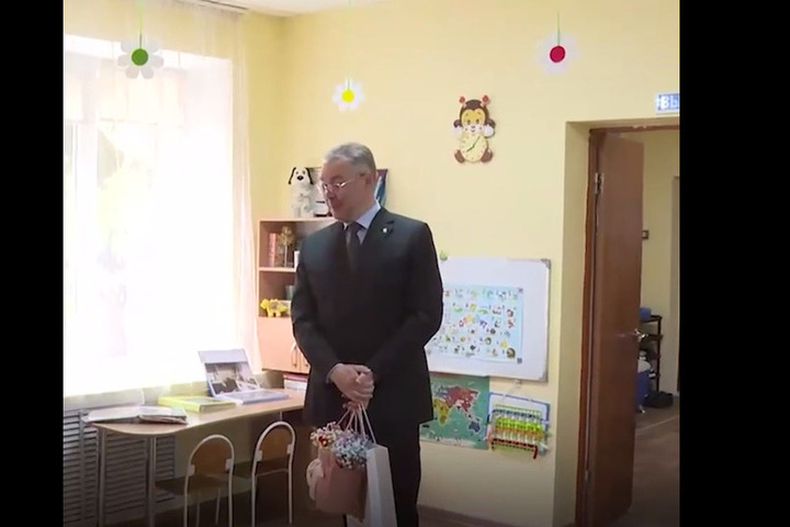 Губернатор Ставрополья Владимир Владимиров приехал в детский сад «Журавушка» в Ставрополе. Там он вручил подарок и цветы девочке Маше, которая потеряла кроссовок 9 мая во время акции «Наследники Победы».