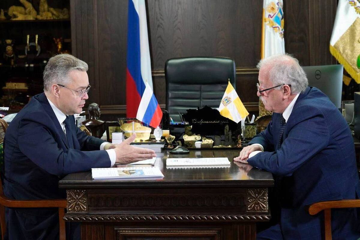 Губернатор Ставрополья Владимир Владимиров на встрече с председателем краевой Думы Николаем Великданем обсудили поддержку участников специальной военной операции.