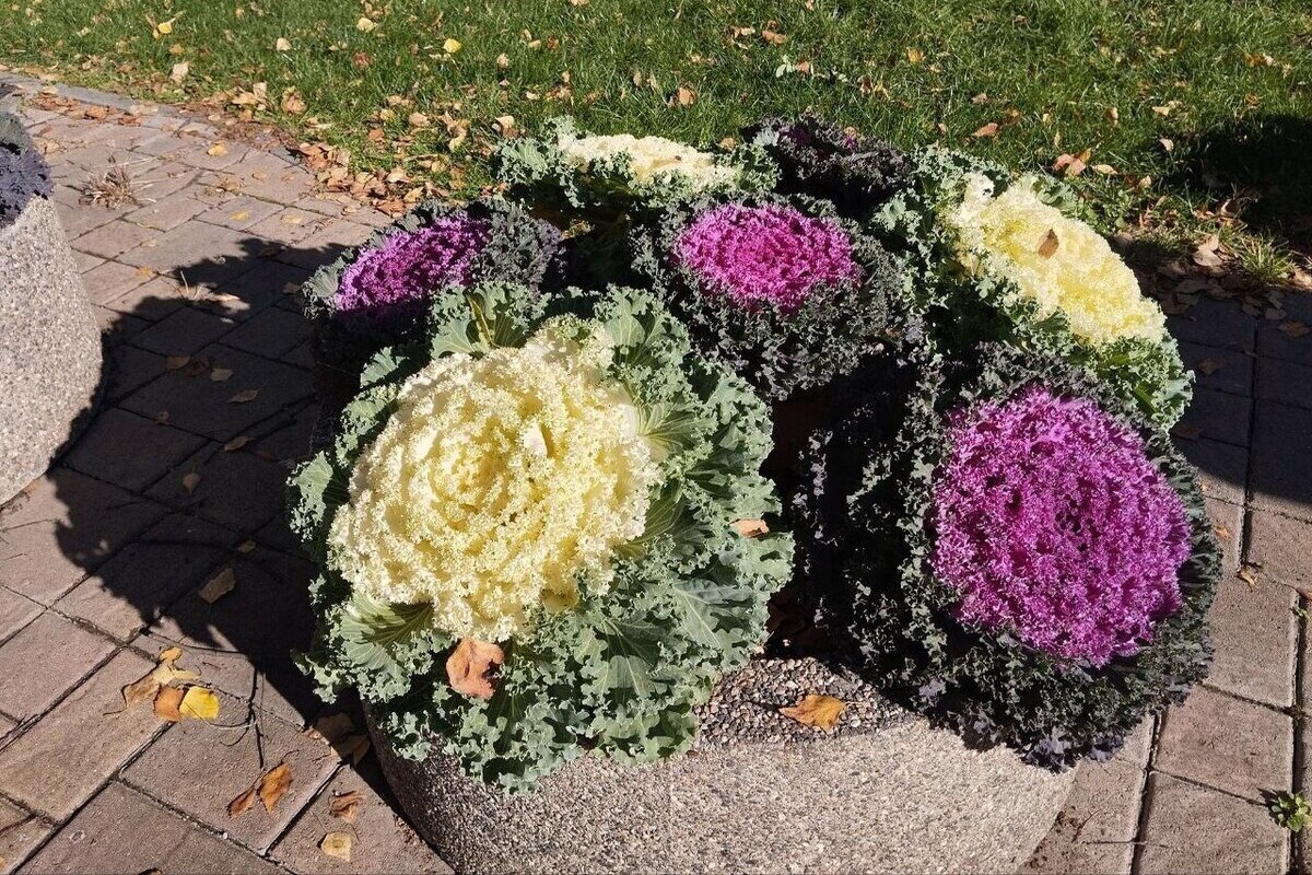 Этот выбор не случаен: декоративная капуста, известная также как брассика, отличается морозостойкостью. Брассика - общее название для группы сортов капусты, которые выращиваются преимущественно ради их необычайно красивых, ярко окрашенных листьев, а не для употребления в пищу. Тривиальное название «брассика» происходит от латинского наименования рода «капуста» (Brassica).