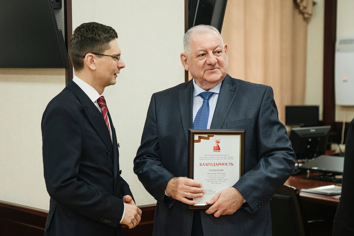 «Данная награда является признанием значительного вклада Александра Павловича в организацию и проведение масштабных мероприятий, посвященных юбилейной дате, - говорится в сообщении пресс-центра вуза. - Благодарственное письмо, подписанное руководителем Администрации Президента Российской Федерации, председателем Организационного комитета Антоном Вайно, особо отмечает активное участие, ответственную работу и значимый личный вклад профессора Горбунова в сохранение исторической памяти о героях Великой Отечественной войны».