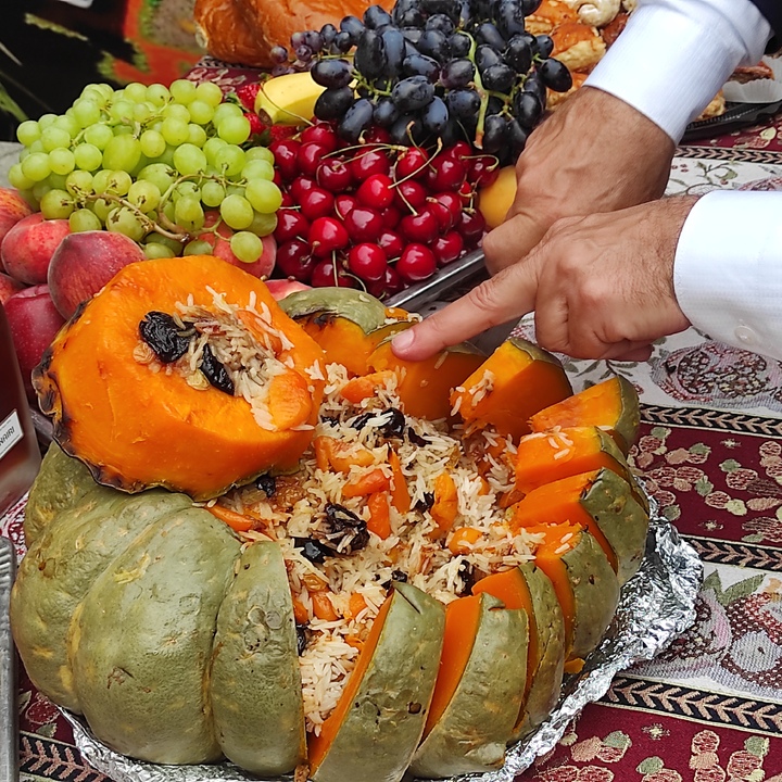 Армянский стол всегда поражает своим изобилием и символизмом. Председатель общественной организации «Местная армянская национально-культурная автономия г. Кисловодска «Крунк» Олег Айриян подчеркнул, что глубокие традиции гостеприимства и важность хлеба (лаваша) как основы стола делают армянскую кухню особенно хлебосольной. На Новый год в армянских семьях готовят целый ряд ритуальных блюд. Среди них - анушапур (компот из сухофруктов), сладкий пирог гата, часто постная долма и, конечно, мясные угощения, такие как шашлык или фаршированная индейка «амич». Особое место занимает каша кашика (ариса) - символ мира и благополучия. А визитная карточка праздничного стола - хапама, национальное армянское блюдо из тыквы, фаршированной рисом, сухофруктами и мёдом - это не просто десерт, а настоящее произведение кулинарного искусства.