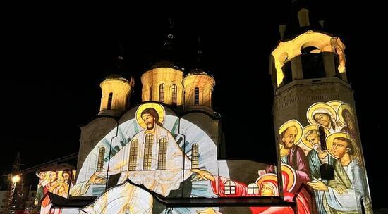 Слайд-мэппинг оживил стены Владимирского собора иконописью, православными картинами, световыми инсталляциями.