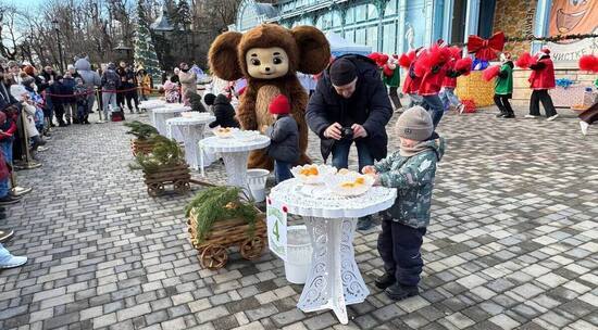 На площади перед Пушкинской галереей состоялся уже третий по счету фестиваль по очистке мандаринов.